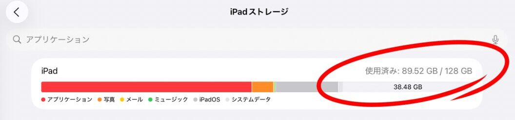 参考までに1年程度使った私のiPadストレージを見てみましょう。