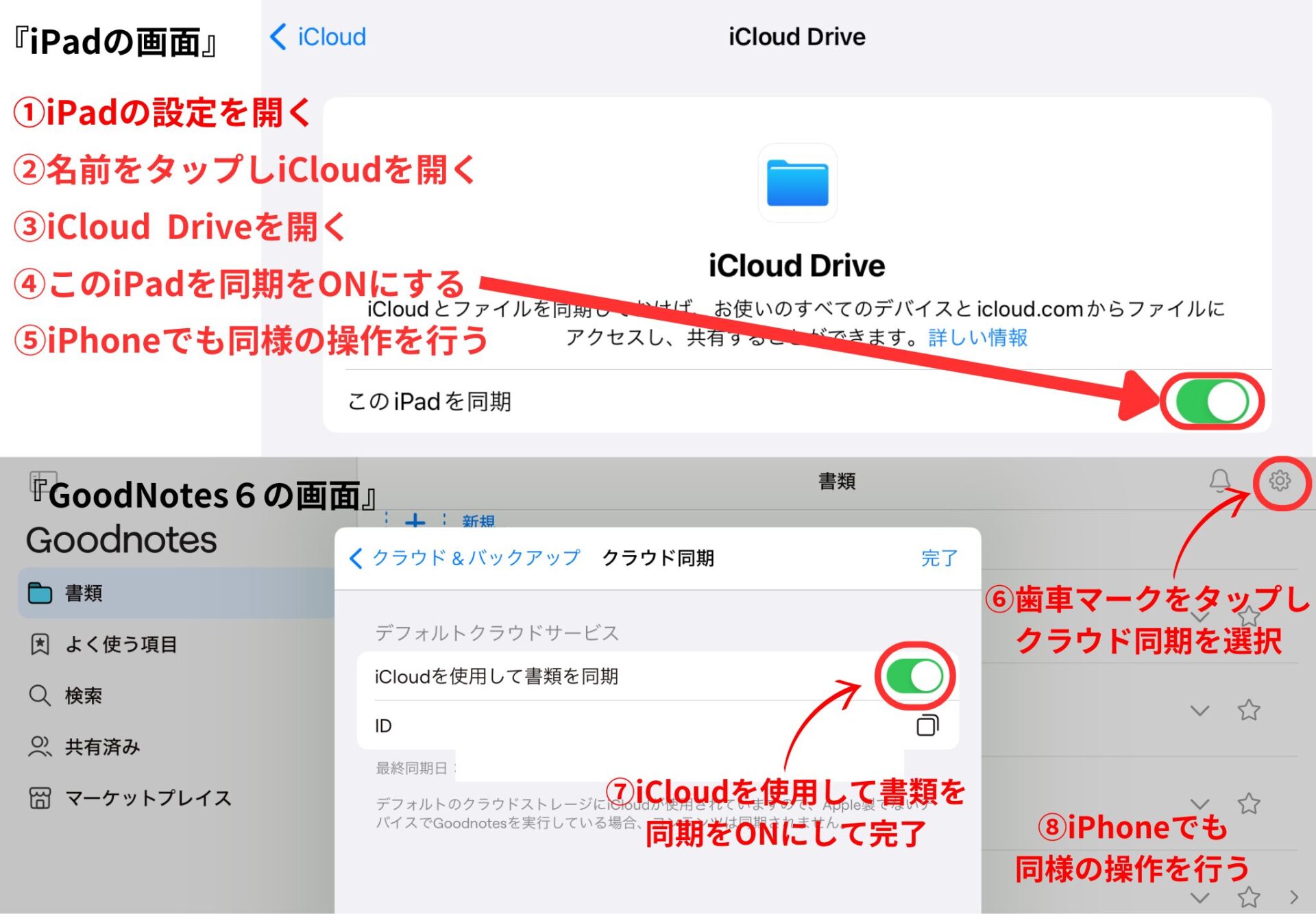 GoodnotesはAppleのiCloudと同期することで、作成・編集したノートを他のAppleデバイスでも見ることができます。