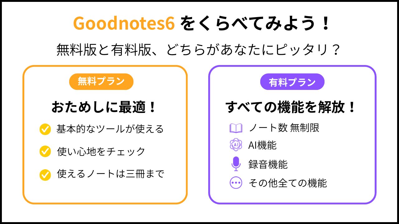 Goodnotesの無料版と有料版では使える機能が違う